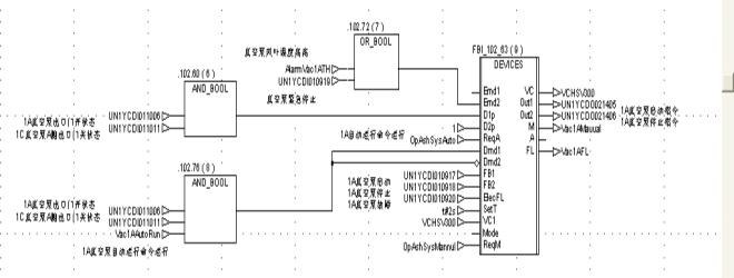 本系统组态采用FBD功能快,并利用Concept支持自定义模块的功能,自定义了电机与电磁阀的DEVICE模块,,将本系统PLC的组态软件Concept做成了DCS化;