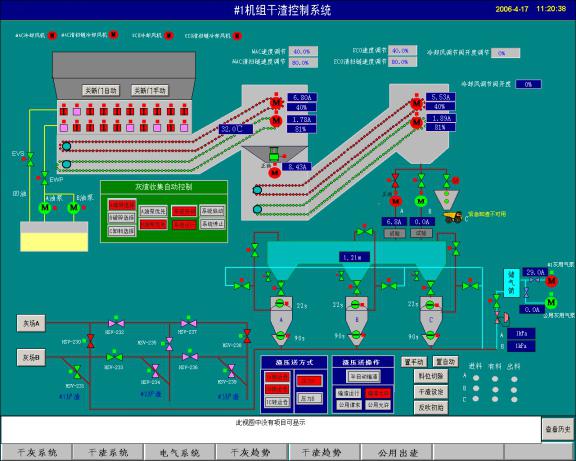 本系统分为四个部分:干灰收集系统、干渣收集系统、干灰压送系统、干渣压送系统;