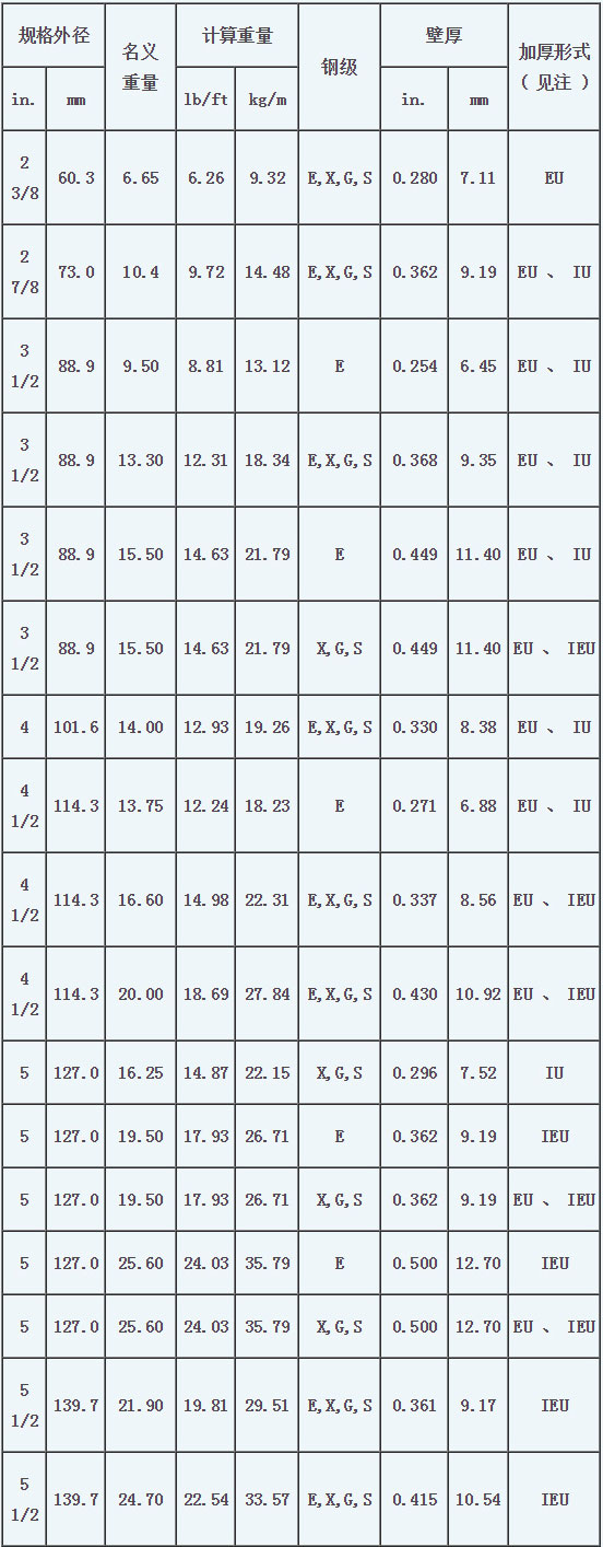 注:EU-外加厚;IU-内加厚;IEU-内外加厚