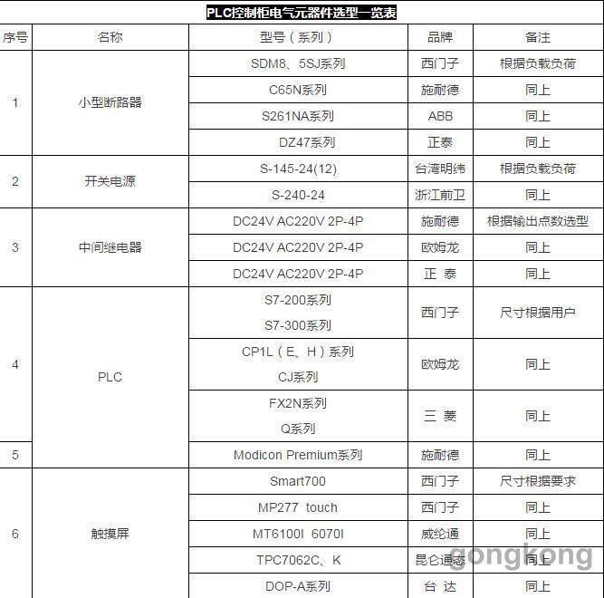 电气工程师常用道德PLC控制柜基本的元器件选型